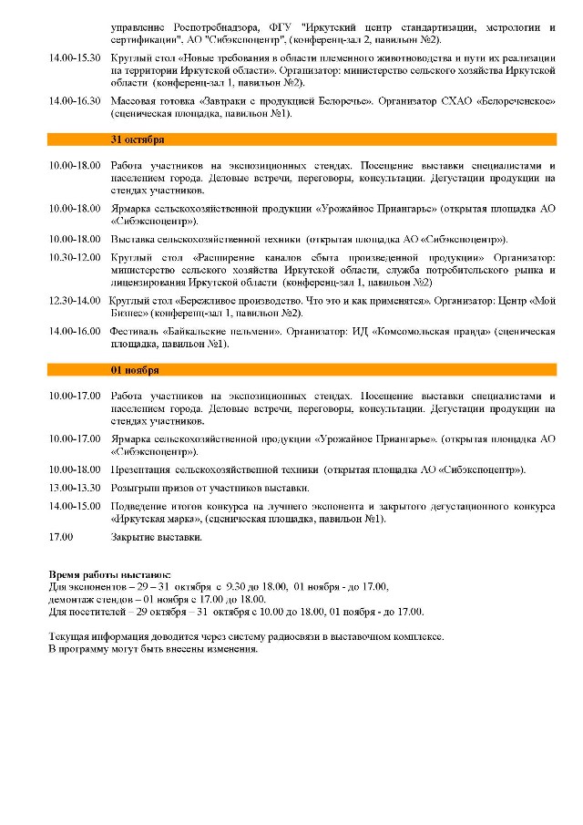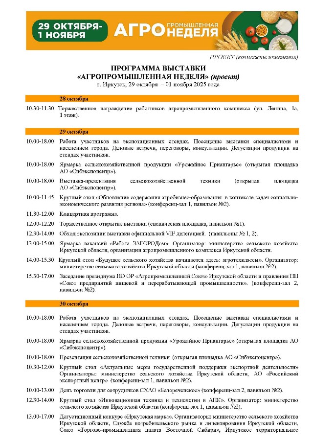 Выставка является одним из главных выставочных мероприятий региона и проводится с целью демонстрации достижений агропромышленного комплекса Иркутской области.